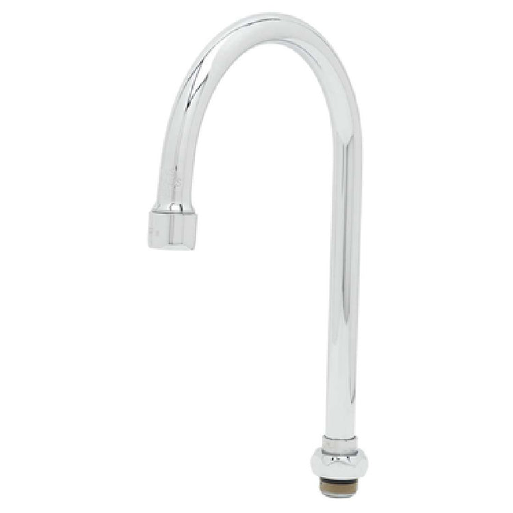 The T-S Brass 133X Nozzle Swivel 10-5/16" H is a meticulously engineered component designed for advanced utility and versatility in various industrial applications. Crafted from chrome-plated brass, this nozzle offers a durable and corrosion-resistant solution, ensuring longevity and reliability in demanding environments. The nozzle features a 10-5/16" height and a 5-3/4" spread, optimizing its reach and functionality in diverse settings. Its gooseneck design enhances maneuverability, making it an ideal choice for spaces where flexibility and range are paramount. Equipped with a stream regulator outlet, the T-S Brass 133X ensures consistent and controlled water flow, catering to precise operational requirements. This low-lead fixture aligns with stringent health standards, adhering to both ANSI and NSF certifications, which underscores its compliance with industry safety and quality benchmarks. The swivel functionality further adds to its adaptability, allowing for seamless directional changes without compromising performance. This nozzle stands out as an essential component for businesses seeking reliable, efficient, and certified plumbing solutions in sectors such as hospitality, healthcare, and food service. By integrating such features, the T-S Brass 133X becomes not just a tool, but a pivotal element in enhancing operational efficiencies across varied industry landscapes.