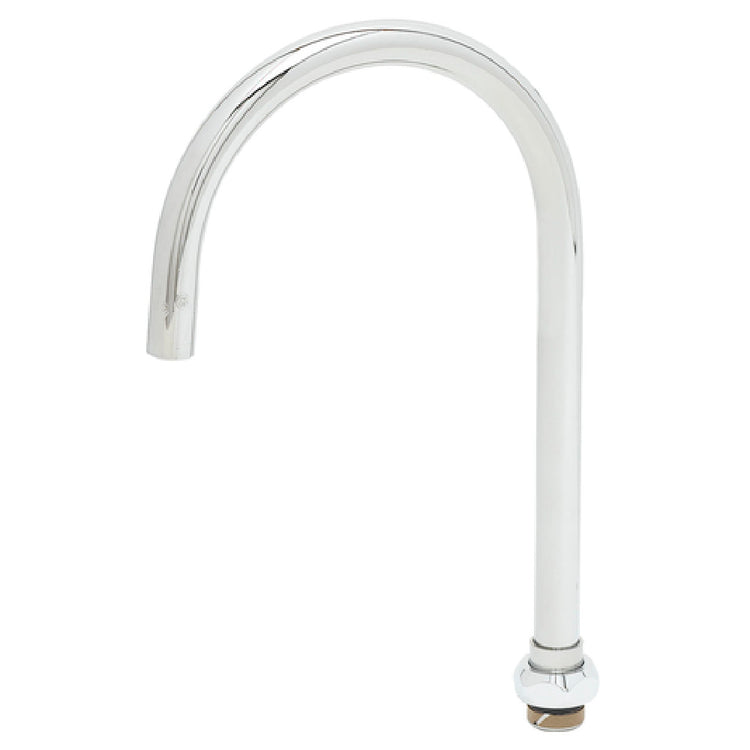 The T&S Brass 133XP-F10 Nozzle Swivel 10-5/16"H is engineered for optimal performance across varied applications within the plumbing and commercial kitchen industries. Measuring a precise height of 10-5/16 inches and featuring a 5-11/16 inch spread, this gooseneck nozzle provides the ideal configuration for efficient water delivery. With a clearance of 6-5/16 inches, it is designed to accommodate a range of sink depths and sizes, maximizing utility while maintaining a sleek profile. The plain end outlet is crafted for straightforward installation and usage, enhancing its adaptability in diverse settings. Operating at a flow rate of 1.0 gallons per minute (gpm), it balances water conservation with effective performance. The swivel feature ensures flexibility and ease of use, crucial for dynamic environments such as restaurant kitchens, healthcare facilities, or laboratory settings where adaptability and precision are paramount. The T&S Brass 133XP-F10 is not just an accessory but a critical component that upholds the standards of efficiency and reliability expected in professional-grade plumbing solutions.