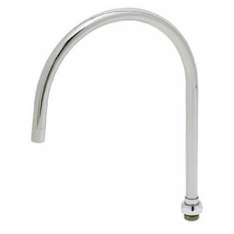 The T&S Brass 134XP-F05 Nozzle Swivel 11-3/16"H is a highly efficient fixture designed for industries requiring precision water flow and excellent reach. Standing at 11-3/16 inches tall with a 7-11/16 inch spread, this gooseneck nozzle provides optimal maneuverability and flexibility in various applications. It is equipped with a 0.5 GPM laminar flow disc, ensuring a smooth and consistent water stream, which is crucial for tasks demanding accuracy and reduced splashing. The low lead composition of this nozzle makes it compliant with stringent safety and health standards, making it a suitable choice for operations prioritizing user safety and environmental considerations. Additionally, the T&S Brass 134XP-F05 is cCSAus and NSF certified, affirming its adherence to North American safety and sanitation standards. This versatile nozzle swivel caters to diverse market segments including hospitality, healthcare, and food service industries, where reliable and safe water dispensing systems are paramount. Its robust design and certifications ensure it meets the demanding requirements of commercial environments, providing a dependable solution for businesses aiming to maintain high standards of efficiency and safety in their operations.