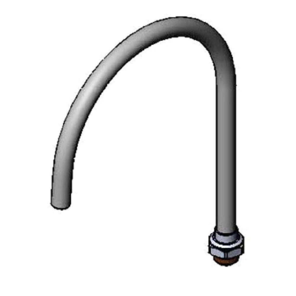 The T&S Brass 134XP Nozzle Swivel 11-3/16" H is a precision-engineered component designed for optimal functionality in various professional settings. Featuring an 11-3/16 inch height and a 7-11/16 inch spread, this swivel nozzle is crafted to meet the demands of rigorous industry usage. Constructed from low-lead, chrome-plated brass, it ensures durability and compliance with safety standards, making it suitable for establishments where material integrity and safety are paramount. The gooseneck design with a plain end outlet is tailored to provide flexibility and ease of use, enhancing operational efficiency in kitchens and other commercial environments. Its swivel feature allows for dynamic maneuverability, ensuring adaptability across a range of applications. The T&S Brass 134XP is a versatile solution for businesses needing reliable and high-quality water delivery systems, with its construction prioritizing longevity and resistance to wear. This nozzle is an excellent choice for professionals seeking components that combine technical precision and robust performance in their operations.