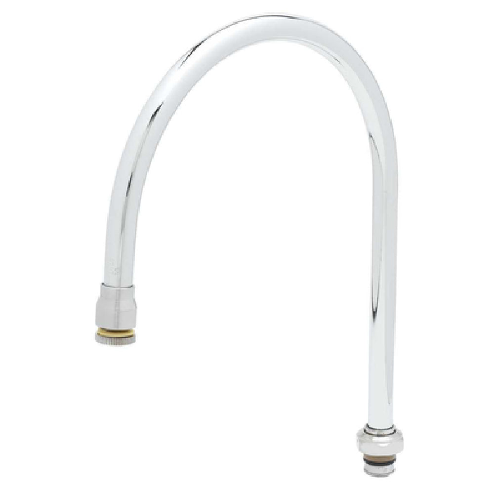 The T&S Brass 135XM Nozzle Swivel 12-1/16" H is a meticulously designed component ideal for diverse applications in the plumbing and restaurant industries. This nozzle features a swivel functionality, emphasizing its adaptability and ease of use in various settings. With a height of 12-1/16 inches and an 8-3/4 inch spread, it offers a balanced performance for tasks requiring precise water delivery. The gooseneck design not only adds to its aesthetic appeal but also enhances its functionality by allowing efficient water flow control. Equipped with a stream regulator outlet, this nozzle ensures a steady and consistent stream, vital for specific applications that demand accuracy. Crafted from chrome-plated brass, it guarantees durability and resistance to corrosion, while maintaining a sleek, professional appearance. The low-lead construction underscores its compliance with health and safety standards, aligning with NSF certifications that assure its suitability for commercial use. Packaged in a master pack of six, it provides significant value for businesses needing multiple units. The T&S Brass 135XM Nozzle Swivel is an essential component for professionals seeking reliability and performance in their water delivery systems.