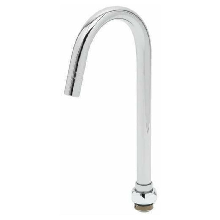 The T&S Brass 179XP-F05 Nozzle Swivel 4-1/4" Spread is a specialized plumbing fixture noted for its precise engineering and durable construction, ideal for use in commercial kitchens and industrial settings. This swivel nozzle features a 4-1/4" spread, providing ample reach and flexibility for various applications. The gooseneck design ensures ease of use and adaptability, allowing for smooth water flow and directional control. With a 0.5 GPM flow disc, this nozzle is optimized for water efficiency, balancing performance with eco-consciousness. Crafted from chrome-plated brass, the fixture offers a sleek appearance while ensuring long-lasting resilience against wear and corrosion. The low-lead composition of the nozzle underscores its commitment to safety and compliance with industry standards, making it suitable for environments where health and safety are paramount. Additionally, it holds NSF certification and meets cCSAus standards, guaranteeing its adherence to rigorous quality and safety benchmarks. The plain tip design adds simplicity and ease of operation, making it a reliable component in various water dispensing systems. The T&S Brass 179XP-F05 is an essential tool for businesses seeking performance coupled with regulatory compliance in their plumbing solutions.