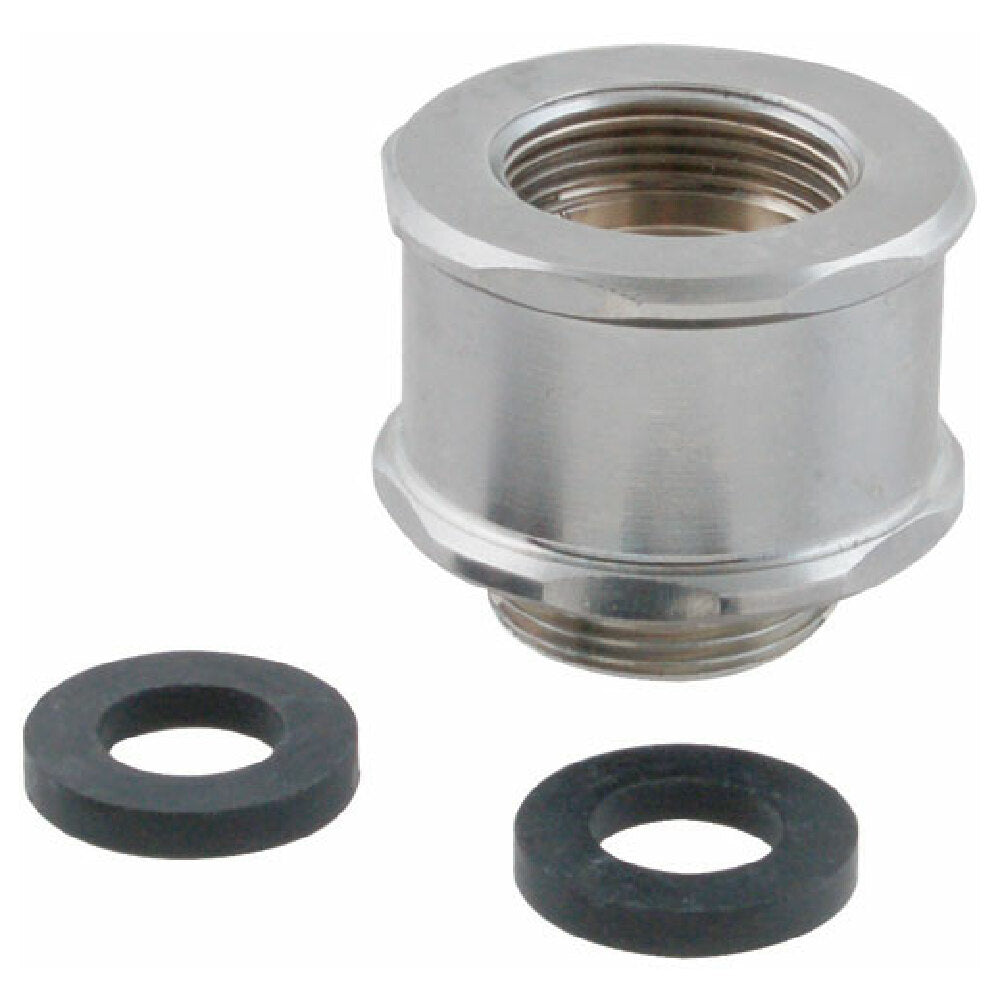 T&S Brass 18200-40 Material Brass, Length 1-3/16", Includes 111-1093 (2) Washers, Plating Chrome-plated, Inlet 7/8" Female, Outlet 7/8" Male, Lead Free Y