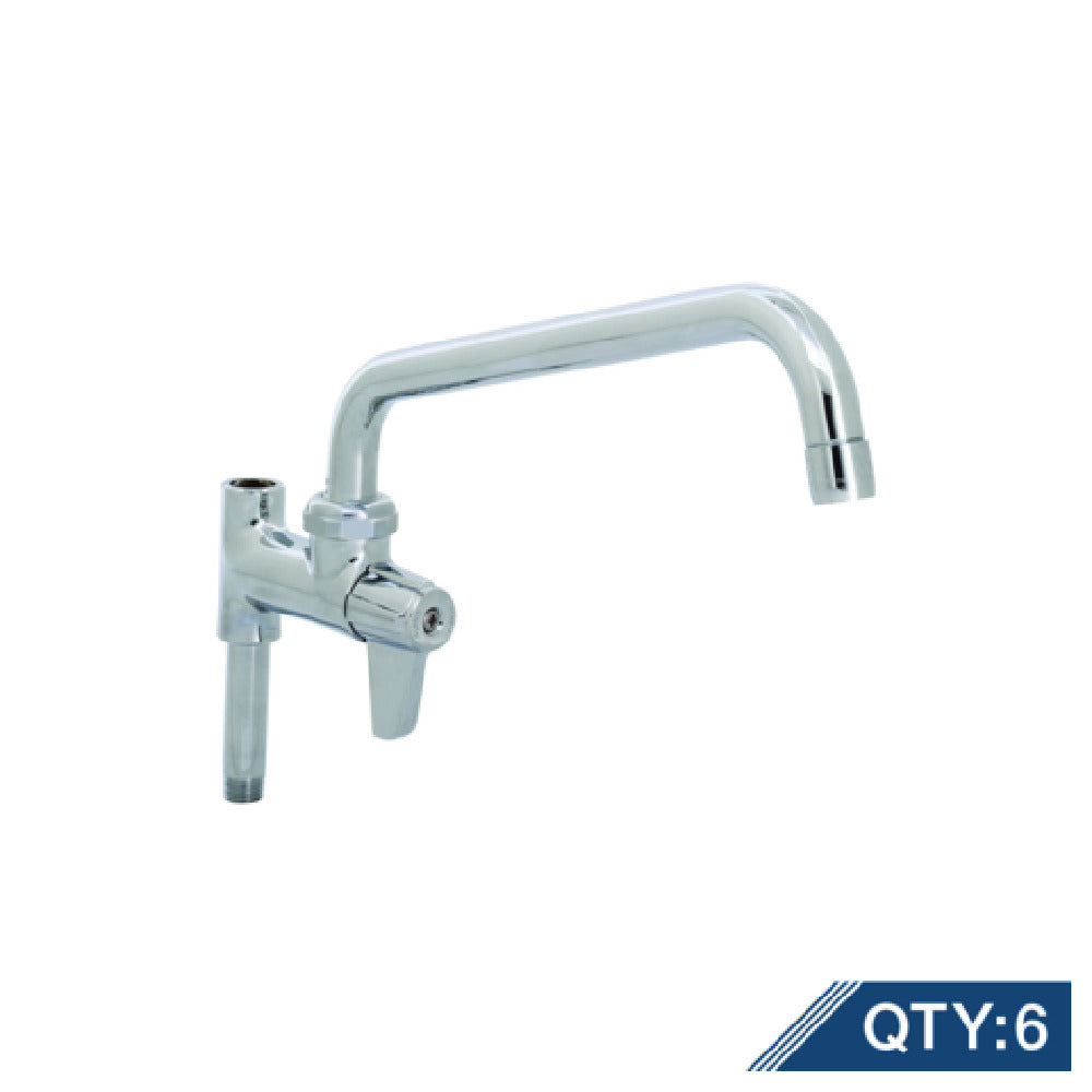 The T&S Brass 5AFL12-PQ6 Equip Add-On Faucet with Quarter-Turn Ceramic Cartridge & 12" Swing Nozzle with Laminar Flow Device is a premium plumbing fixture tailored for a variety of professional kitchen and laboratory settings. This faucet integrates a 12-inch swing nozzle, providing versatility and reach that caters to diverse user requirements. The inclusion of a laminar flow device ensures smooth water delivery, reducing splash and promoting efficient water usage. The faucet is equipped with a quarter-turn ceramic cartridge, a feature that guarantees precise control and durability, enhancing its performance in high-demand environments. Its 3/8" NPT connection offers compatibility with a wide range of existing plumbing systems, facilitating easy installation. Certified by NSF, this faucet adheres to rigorous standards of health and safety, making it a reliable choice for establishments prioritizing sanitary conditions. Furthermore, the ADA compliance underscores its accessibility features, ensuring ease of use for individuals with varying abilities. Packaged with six units per case, the T&S Brass 5AFL12-PQ6 emerges as a versatile and efficient solution for industry professionals seeking reliability and performance in their water delivery systems.