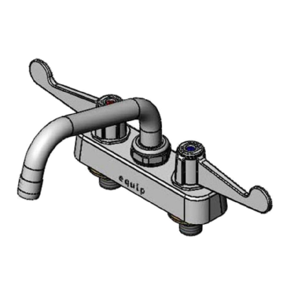 The T&S Brass 5F-4CWX06 Equip Workboard Faucet is a meticulously engineered solution for diverse professional environments, featuring a 4-inch OC deck mount that facilitates secure installation on work surfaces. This sturdily constructed faucet comes with a 6-inch swing nozzle, allowing for flexible water delivery across a broad range of tasks. Its quarter-turn ceramic cartridge ensures smooth operation and enhances the longevity of the faucet by providing reliable control over water flow. Designed with 4-inch wrist action handles, the faucet is user-friendly and ideal for settings where ease of use is paramount. Furthermore, the faucet meets low lead standards, emphasizing its commitment to safety and health regulations. As an ADA Compliant product, it aligns with accessibility standards, making it suitable for inclusive environments. The T&S Brass 5F-4CWX06 faucet stands out for its blend of functionality and compliance, offering a practical yet sophisticated choice for workboards in various industry segments, including food service, healthcare, and industrial applications.