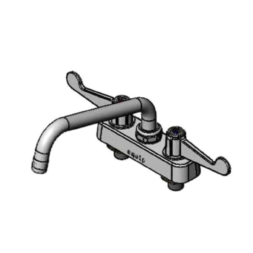 The T&S Brass 5F-4CWX08 Equip Workboard Faucet is a meticulously engineered piece, ideal for settings requiring durable and efficient plumbing solutions. This faucet is designed with a 4-inch on-center deck mount, providing a sturdy and reliable installation. The inclusion of an 8-inch swing nozzle enhances its functionality, allowing for ease of use and versatility across various tasks. Equipped with a quarter-turn ceramic cartridge, this faucet ensures smooth operation and longevity, reducing maintenance needs. The 4-inch wrist action handles are designed for user convenience and comply with ADA standards, making them accessible for individuals with disabilities. Additionally, the faucet is crafted with low lead content, aligning with safety and environmental standards. This combination of features makes the T&S Brass 5F-4CWX08 a suitable choice for commercial kitchens, laboratories, and other professional environments where reliability and compliance are paramount. Its blend of technical precision and user-centric design highlights its value as a dependable asset in demanding workspaces.
