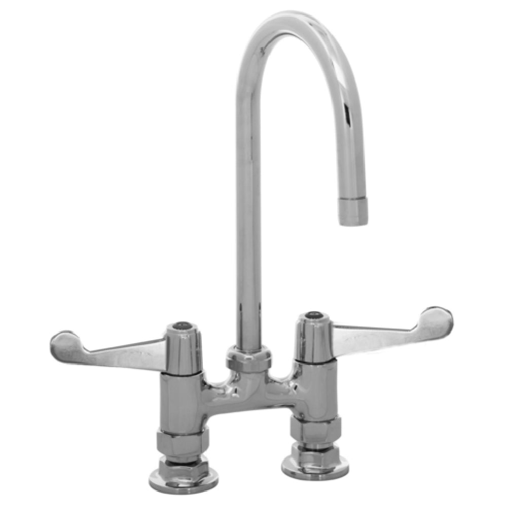 The T&S Brass 5F-4DWS05 Equip Faucet - 4" Center Deck Mount is a versatile plumbing solution designed for both commercial and residential environments. Featuring a 5-1/2" gooseneck, this faucet ensures optimal water flow and reach, accommodating a variety of sink designs. It incorporates a quarter-turn ceramic cartridge, providing reliable performance and longevity, with smooth and effortless operation. The wrist action handles are equipped with color-coded screws, enhancing usability and compliance with ADA standards. These features make the faucet accessible for individuals with limited mobility. The 1/2" NPT female inlets ensure compatibility with a wide range of plumbing systems, simplifying installation for professionals. Crafted with a low lead composition, it meets strict safety and health regulations, making it an ideal choice for establishments that prioritize customer safety and environmental responsibility. This faucet is particularly suited for the food service industry, healthcare facilities, and public restrooms, where durability and accessibility are paramount. Its robust construction and compliance with ADA requirements underscore its commitment to quality and user-friendly design, reflecting T&S Brass’s dedication to producing high-performance plumbing fixtures.
