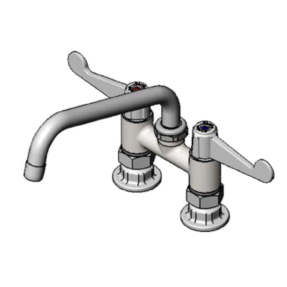 The T&S Brass 5F-4DWX08 Equip Faucet is a versatile and practical option for commercial kitchens and other professional environments requiring efficient water flow management. This swivel faucet features a 4-inch deck mount and an 8-inch swing nozzle, providing flexibility and ease of use. The quarter-turn ceramic cartridge ensures durability and smooth operation, minimizing maintenance over time. Equipped with 4-inch wrist handles, this faucet is designed for easy handling and accessibility, particularly beneficial in high-paced workspaces. The 1/2-inch NPT connection allows for secure and straightforward installation. Notably, the faucet is low lead compliant, aligning with safety standards to safeguard user health. Additionally, it meets ADA compliance, making it suitable for environments that prioritize accessibility for individuals with disabilities. The T&S Brass 5F-4DWX08 Equip Faucet is a reliable choice, combining efficiency, safety, and accessibility, catering to a range of market segments within the industry, from bustling restaurant kitchens to institutional facilities focused on inclusive design.