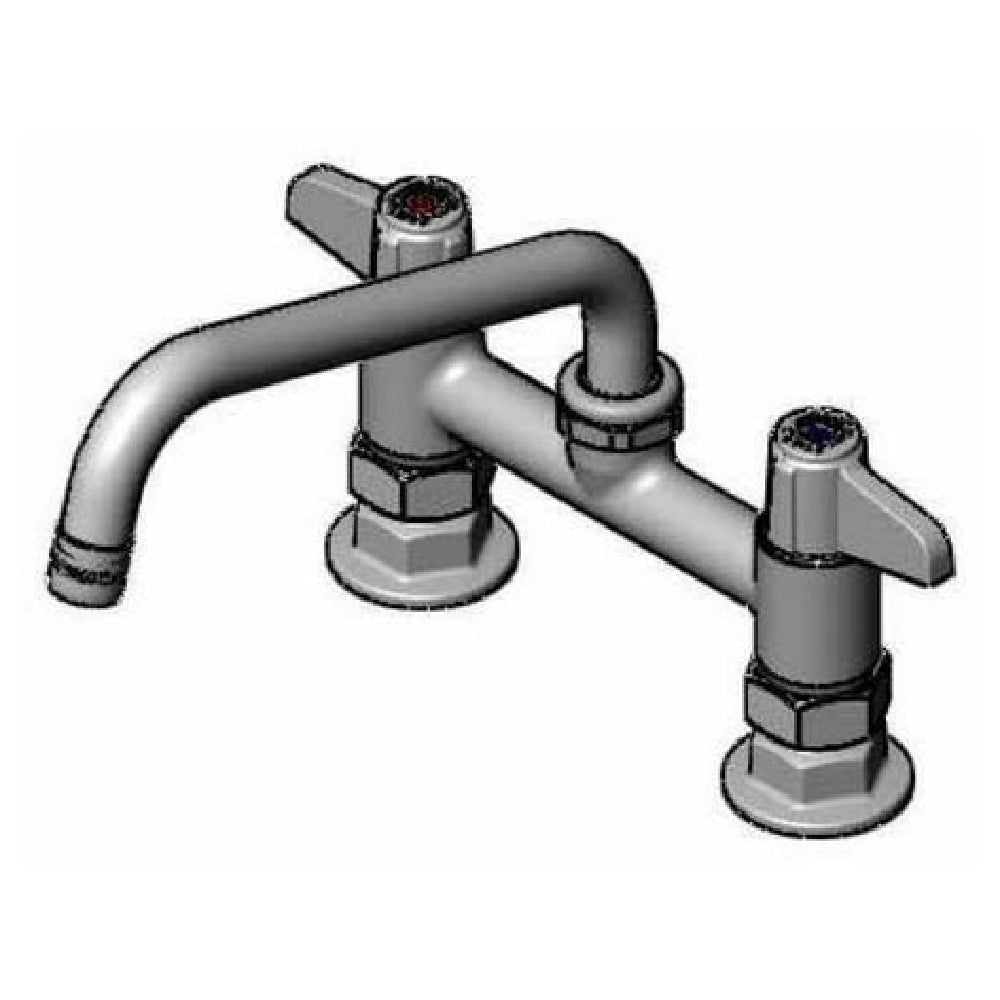 The T&S Brass 5F-6DLS08A Equip Faucet is a precision-engineered fixture designed for reliability and efficiency in commercial environments. This deck-mounted faucet, featuring a 6-inch mount, is equipped with an 8-inch swing nozzle, allowing for versatile water flow direction. At the core of its operation is a quarter-turn ceramic cartridge, ensuring smooth, durable performance with minimal maintenance. The faucet is fitted with lever handles and integrates a laminar flow device complemented by a 2.2 GPM aerator, delivering a steady, splash-free stream. Its 1/2-inch NPT supply nipples facilitate easy installation while ensuring compatibility with existing plumbing systems. Notably, this model adheres to low lead standards, making it a safe choice for any business prioritizing health compliance. Moreover, it is ADA compliant, demonstrating its suitability for facilities aiming to provide accessible solutions. The T&S Brass 5F-6DLS08A Equip Faucet stands out in its category, offering a blend of functionality and compliance that appeals to various industry sectors, including hospitality and healthcare, where high standards of hygiene and accessibility are paramount. This faucet combines robust construction with thoughtful design features to meet the rigorous demands of professional kitchens and other commercial spaces.