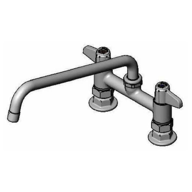 The T&S Brass 5F-6DLS10A Equip Faucet is a precision-engineered plumbing fixture designed for commercial environments requiring robust and compliant hardware. This 6-inch deck mount faucet incorporates a 10-inch swing nozzle, ideal for flexible water access in various tasks. It features a quarter-turn ceramic cartridge, ensuring durability and smooth operation for long-term use. The lever handles provide ease of use, catering to environments demanding quick and efficient water control. With a flow rate of 2.2 GPM, the faucet maintains a balance between performance and water conservation. It includes 1/2-inch NPT supply nipples, making it compatible with standard plumbing configurations. The low lead composition ensures safety and compliance with health standards, while its ADA compliance signifies its accessibility for users with disabilities. This faucet is an essential component for industries such as hospitality, healthcare, and food service, where reliable performance and compliance with stringent standards are critical. Its construction and features make the T&S Brass 5F-6DLS10A a versatile and valuable asset for various sector-specific applications.