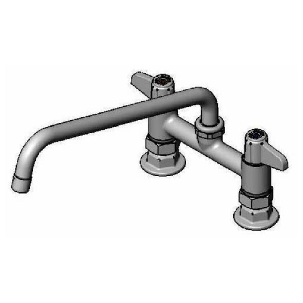 The T&S Brass 5F-6DLS12A Equip Faucet is a meticulously engineered fixture designed for commercial and industrial applications, ensuring both reliability and compliance. This faucet boasts a 6-inch deck mount configuration, complemented by a 12-inch swing nozzle, facilitating versatile water distribution in a variety of settings. It features a quarter-turn ceramic cartridge, offering smooth operation and long-lasting durability. The inclusion of lever handles enhances user accessibility, adhering to ADA compliance standards. With a 2.2 GPM aerator, this faucet ensures efficient water flow, balancing performance with water conservation. The 1/2-inch NPT supply nipples provide a robust connection to existing plumbing systems, ensuring compatibility and ease of installation. Notably, the T&S Brass 5F-6DLS12A is crafted with low lead materials, prioritizing user safety and meeting stringent health standards. This faucet is an ideal choice for establishments that prioritize functionality and compliance within commercial kitchens, laboratories, and healthcare facilities, providing a balance of form and function suitable for diverse operational demands.
