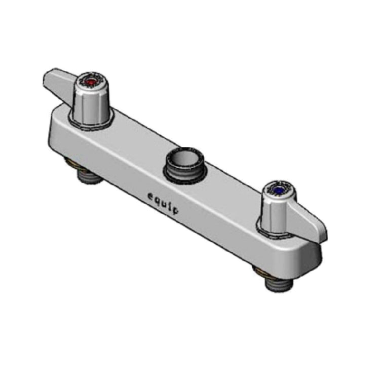 The T&S Brass 5F-8CLX00 Equip Workboard Faucet Swivel 8" is an expertly engineered deck-mount faucet designed for diverse professional settings, offering exceptional reliability and efficiency. This faucet features a ceramic cartridge, ensuring durability and seamless operation over time. The swivel mechanism allows a full range of motion, enhancing its functionality in dynamic work environments. Its 8-inch configuration makes it suitable for various workstations, providing ample reach and precision. The lever handles are designed for ease of use, adhering to ADA compliance standards, which cater to accessibility needs across different user groups. Constructed with a 1/2" NPT connection, the faucet integrates smoothly into existing plumbing systems, minimizing installation challenges. Notably, this model is low lead compliant, aligning with health and safety regulations, crucial for food service and healthcare industries. While it is supplied without a nozzle, this feature allows customization to meet specific operational requirements. The T&S Brass 5F-8CLX00 is a versatile and adaptable choice for those seeking a high-performance, compliant faucet solution that meets rigorous standards in varied industry segments such as restaurants, hospitals, and laboratories, where precision and safety are paramount.
