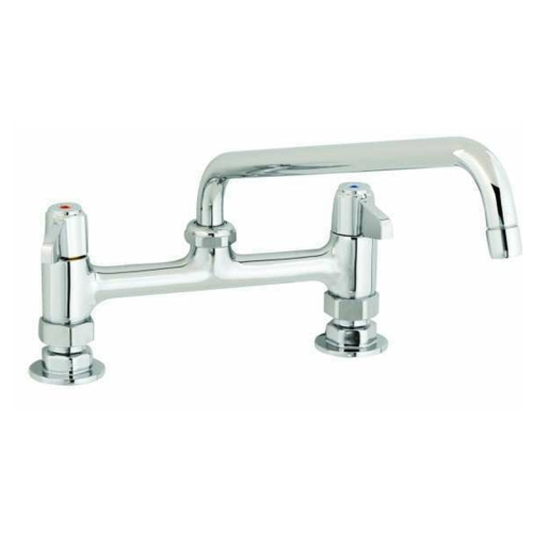 The T&S Brass 5F-8DLS12A Equip Faucet is a high-quality plumbing fixture featuring an 8-inch deck mount design and a 12-inch swing nozzle, making it suitable for various commercial applications. This faucet incorporates a quarter-turn ceramic cartridge, known for its durability and smooth operation, ensuring long-lasting performance. Equipped with lever handles, it allows for easy and precise water control, which is essential in busy environments. With a 2.2 GPM aerator, this faucet delivers a steady and efficient water flow, meeting the demands of high-traffic areas. The 1/2-inch NPT supply nipples facilitate straightforward installation and compatibility with existing plumbing systems. Notably, this faucet is low lead compliant, adhering to stringent safety and health standards, which is critical in food service and healthcare settings. Additionally, it is ADA compliant, ensuring accessibility and usability for all individuals, which is an important consideration in diverse public spaces. The T&S Brass 5F-8DLS12A Equip Faucet is a reliable and versatile option for professionals seeking a faucet that combines functionality, compliance, and ease of use in their operations.