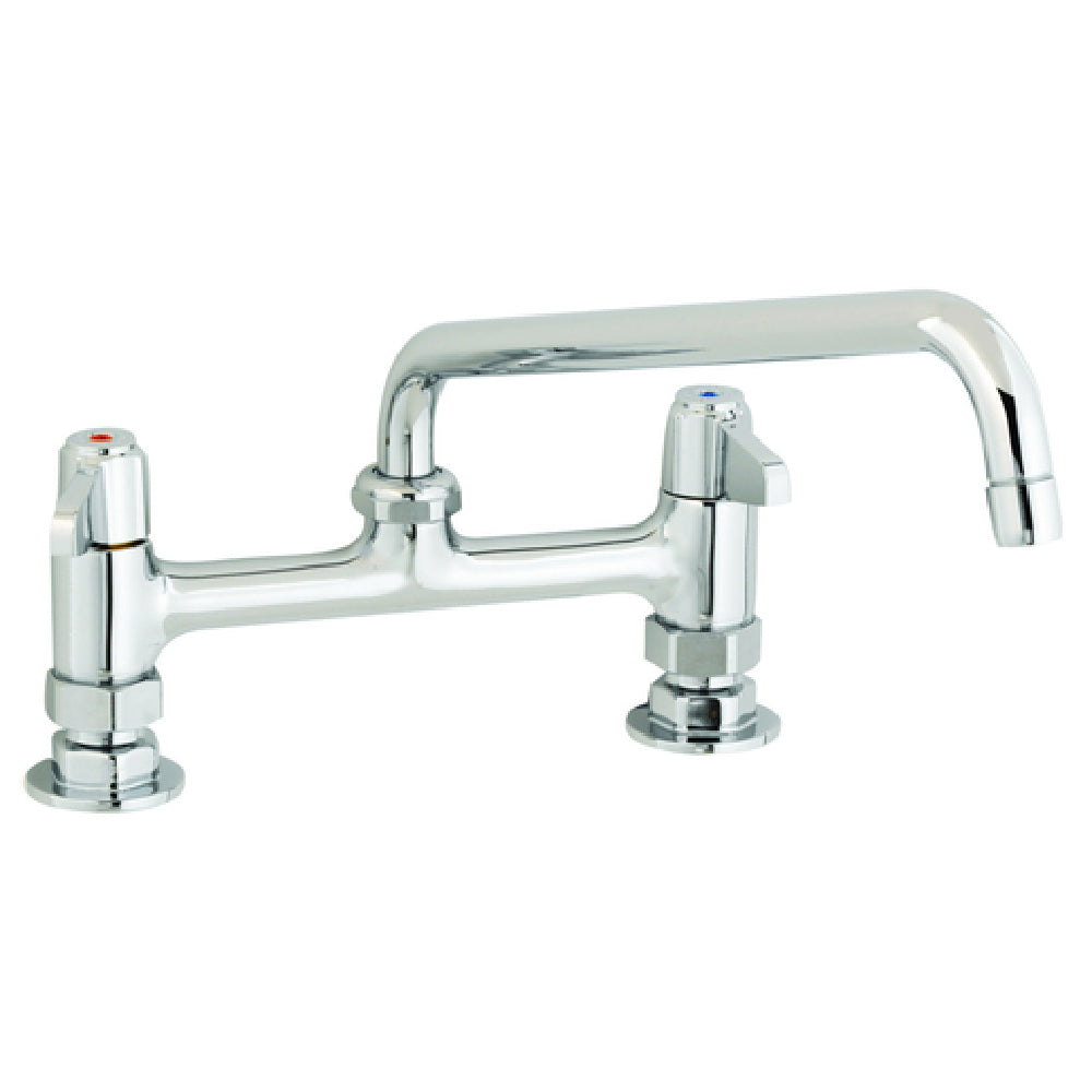 The T&S Brass 5F-8DLX12 Equip Faucet is a meticulously engineered fixture designed for diverse applications across various segments of the commercial kitchen and food service industry. Featuring 8-inch centers and a deck mount configuration, this faucet is crafted to ensure robust performance and ease of installation. The standout feature of this model is its 12-inch swing nozzle, providing extended reach and versatility for different sink sizes and configurations. Enhanced by a ceramic cartridge, it promises durability and smooth operation, reducing maintenance concerns. The faucet is equipped with a 2-inch flange, adding to its structural integrity and ease of attachment. Notably, it is a low-lead product, making it compliant with stringent safety standards, ensuring safe usage in environments prioritizing health and sustainability. The ADA compliance of the T&S Brass 5F-8DLX12 further highlights its accessibility and suitability for facilities requiring adherence to these standards. This faucet seamlessly integrates essential technical specifications with user-centric attributes, making it an invaluable asset for restaurants, hospitality venues, and institutional kitchens seeking reliable, high-quality plumbing solutions.