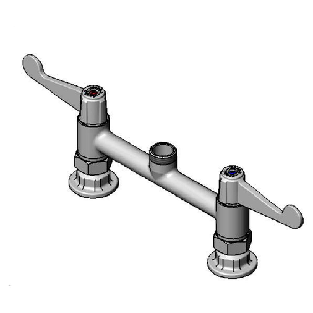 The T&S Brass 5F-8DWX00 Equip Faucet is a versatile swivel faucet featuring an 8-inch deck mount with a sturdy pedestal design, making it a reliable choice for commercial and professional settings. This model is crafted without a nozzle, allowing for customizable installation to suit various needs across different industry segments. Equipped with a quarter-turn ceramic cartridge, the faucet ensures smooth operation and long-lasting performance. The 4-inch wrist handles provide ease of use, especially in environments where hygiene is a priority, offering a user-friendly interface for all users. Designed with a 1/2-inch NPT connection, the faucet is compatible with standard plumbing setups. Emphasizing safety and environmental responsibility, this faucet is low lead compliant and meets ADA standards, ensuring accessibility and reducing environmental impact. The T&S Brass 5F-8DWX00 Equip Faucet is specifically engineered to deliver functionality and reliability, making it an essential component in healthcare facilities, food service operations, and other demanding environments where durability and compliance are critical.