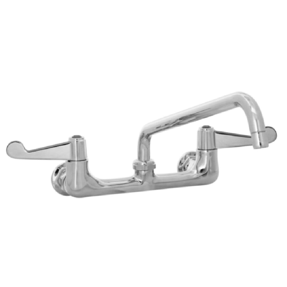 The T&S Brass 5F-8WWS12 Equip Faucet 8" Wall Mount is designed for professional environments requiring robust, reliable, and compliant plumbing solutions. This faucet features an 8-inch wall mount configuration, providing a stable installation for commercial applications. The 12-inch swivel nozzle enhances versatility by allowing for extended reach and maneuverability, making it suitable for tasks requiring directional flow adjustments. It is equipped with wrist action handles, which facilitate ease of use, particularly in settings where quick and hygienic operation is vital. The quarter-turn ceramic cartridges ensure durability and longevity, offering smooth operation and reducing the risk of leaks. Significantly, this faucet is low lead compliant, adhering to stringent safety standards which are vital in food service and medical environments. Furthermore, the T&S Brass 5F-8WWS12 is ADA compliant, ensuring accessibility for all users, which is an essential consideration for public and commercial spaces. This combination of features makes it an outstanding choice for various segments, from restaurants and cafeterias to healthcare facilities, where compliance, ease of use, and durability are prioritized. The T&S Brass 5F-8WWS12 Equip Faucet delivers an effective solution that meets the high demands of any professional setting.