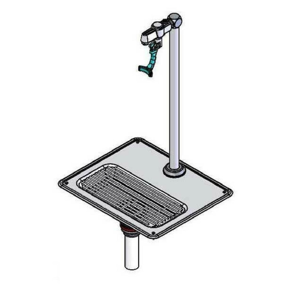 The T&S Brass 5GF-16P-WS Water Station with Equip Glass Filler is a versatile and durable solution for a variety of commercial and institutional applications. This model features a 16-inch pedestal deck mount design, making it suitable for environments where space and efficiency are crucial. The unit is equipped with a push-back mechanism, allowing for easy use without manual operation, and an adjustable flange for flexible installation. The adjustable flow rate feature ensures precise water dispensing based on user requirements. A standout component is the blue self-closing Lexan arm, which enhances safety by automatically shutting off the water flow. The water station includes an 18-gauge stainless steel drip pan with a grid, ensuring cleanliness and ease of maintenance, along with a 1-1/4-inch drain for efficient water management. The 1/2-inch NPT male shank provides a secure connection to plumbing installations. With low lead content, it adheres to safety standards, and its cCSAus and ADA compliance ensures it meets rigorous certification requirements, making it ideal for a wide range of market segments including hospitality, healthcare, and educational facilities, where reliability and compliance are paramount. This water station is engineered to deliver consistent performance while maintaining high standards of quality and safety.