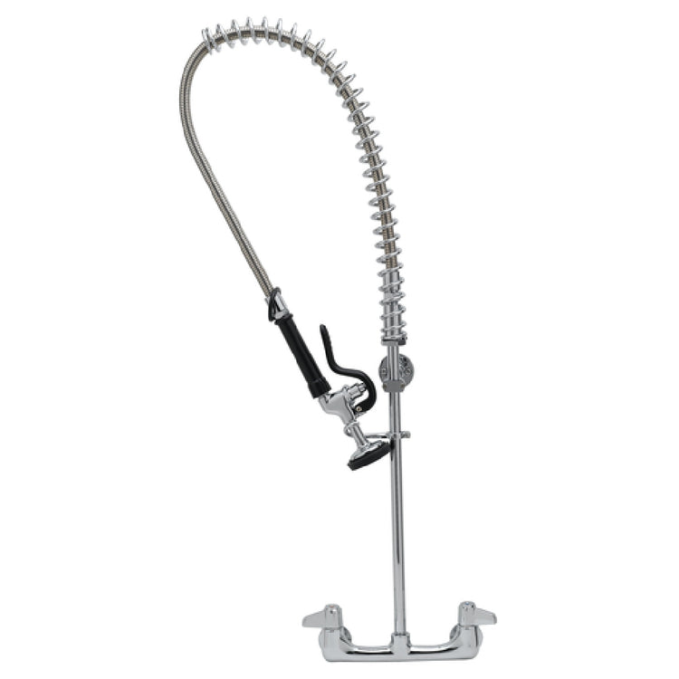 The T&S Brass 5PR-8W00 Equip Pre-Rinse Unit - 8" Centers Wall Mount Base is a highly efficient and versatile choice for commercial kitchen environments that demand reliable performance and durability. Engineered with precision, this unit features 8-inch centers, ensuring a stable and secure wall-mounted base installation. It includes a 6-inch wall bracket, providing additional support and ease of use. The unit is equipped with quarter-turn ceramic cartridges, which offer smooth and reliable operation while enhancing the longevity of the unit. A significant advantage of this pre-rinse unit is its low lead composition, aligning with health and safety standards, making it a trustworthy option for food service establishments. The T&S Brass 5PR-8W00 is designed for efficiency and practicality, making it an essential tool in high-traffic commercial kitchens, such as restaurants, cafeterias, and hotels, where robust equipment is a necessity. Its construction and components are tailored to withstand the rigors of frequent use, delivering exceptional performance in pre-rinse applications, supporting the demands of different market segments within the foodservice industry. This reliable pre-rinse unit underscores T&S Brass’s commitment to quality and innovation in kitchen equipment solutions.