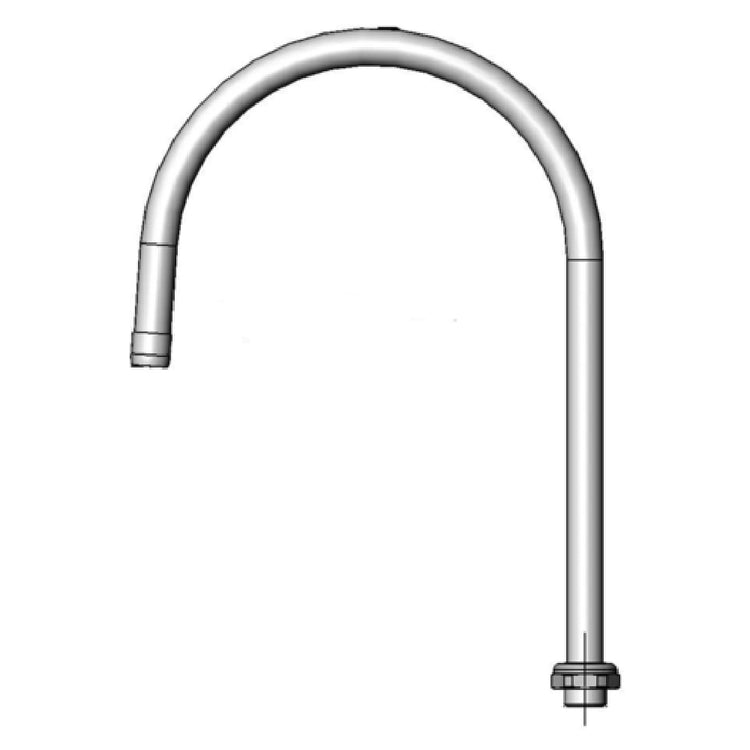 The T&S Brass 5SP-09 Equip Nozzle 9" Swivel Gooseneck 14" H is a precision-engineered plumbing component designed to meet the demands of various industrial and commercial applications. This product features a 9" swivel gooseneck, providing flexible and efficient water delivery for diverse usage scenarios. With a height of 14", it offers a generous 7" clearance, making it suitable for installations requiring ample space beneath the nozzle. The inclusion of a 3/4-27 Un laminar flow device ensures smooth and controlled water flow, reducing splashing and enhancing overall performance. The T&S Brass 5SP-09 is ideal for sectors such as food service, healthcare, and laboratory settings, where reliable and hygienic water dispensing is critical. Its robust construction and thoughtful design underscore its suitability for environments that demand both durability and functionality. This nozzle's adaptability and precision make it an essential component for professionals seeking to optimize their operational efficiency while adhering to exacting industry standards.