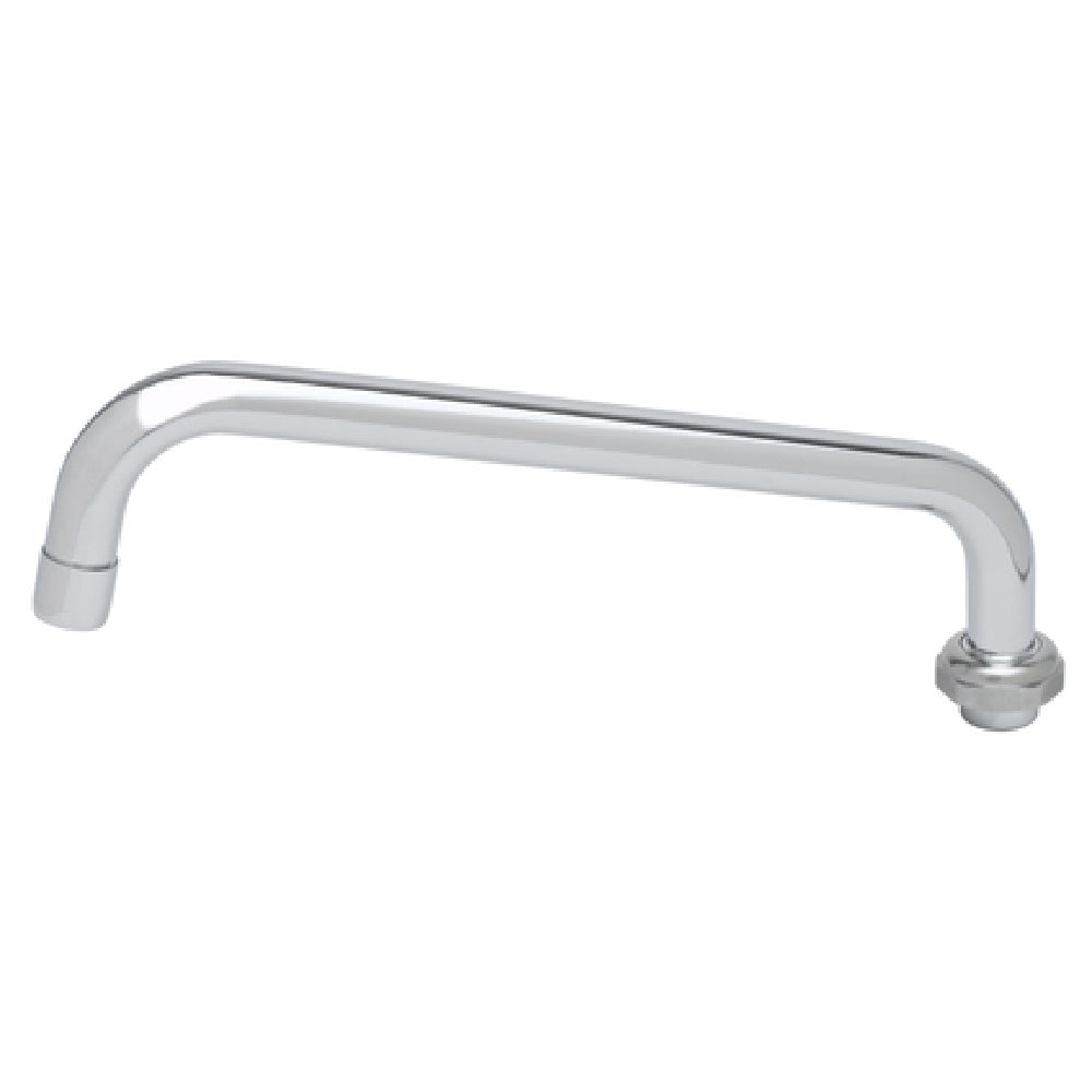 The T&S Brass 5SP-10 Equip Nozzle is a 10-inch long component featuring a 3/4-27 aerator outlet, designed for use in various commercial and industrial settings. This nozzle's swing design enhances flexibility and ease of use, making it an ideal choice for environments requiring frequent directional adjustments of water flow. The technical specifications, including its specific length and aerator outlet size, ensure compatibility with a wide range of plumbing and kitchen fixtures, highlighting its adaptability across different market segments such as restaurants, food service facilities, and industrial kitchens. The precision engineering of the T&S Brass 5SP-10 ensures durability and reliable performance, meeting the high standards demanded by professional environments. Its robust construction not only ensures long-term use but also facilitates efficient water distribution, which is crucial for maintaining hygiene and operational efficiency in high-traffic areas. The specific dimensions and aerator outlet size of this nozzle are key features that contribute to its versatility and utility, making it a vital component for professionals seeking reliable and adaptable plumbing solutions.