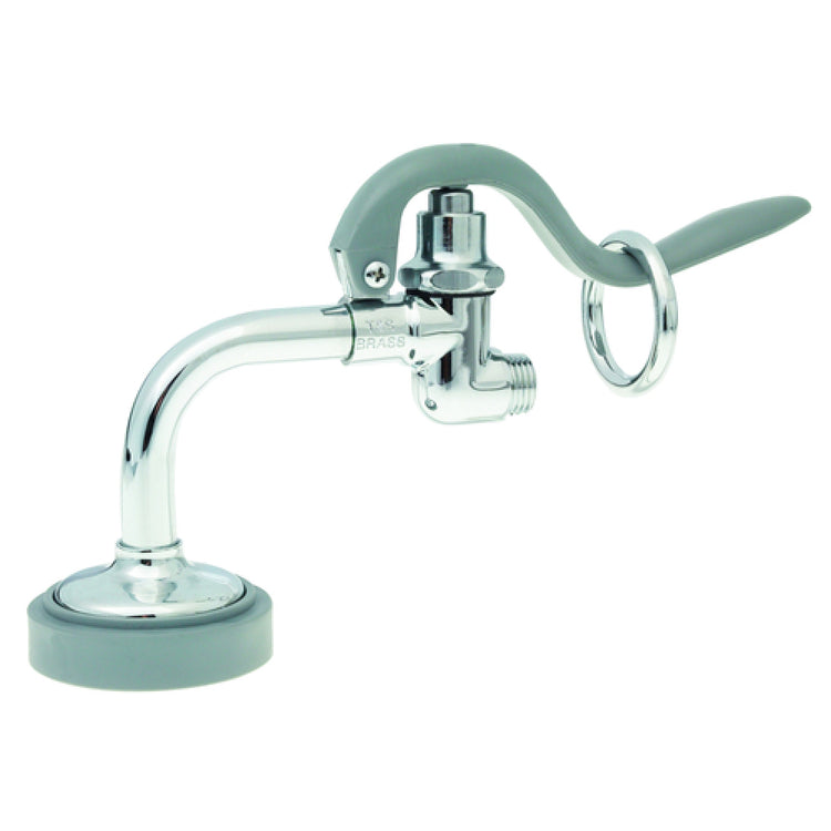 The T&S Brass B-0107-090 Spray Valve is a precision-engineered component, featuring a spray face positioned at a 90° angle, designed to enhance performance across various industrial and commercial settings. The self-closing cartridge mechanism is a key feature, ensuring efficient water usage with a flow rate of 1.15 GPM, which is particularly advantageous for resource-conscious operations. Included with the valve are essential components such as a hose washer and a hold down ring, ensuring a secure fit upon installation. The 3/4"-14 male inlet configuration offers compatibility with a wide range of plumbing setups, making it a versatile choice for businesses in sectors such as food service, hospitality, and healthcare. The unique angular design of the spray face, coupled with the self-closing feature, provides not only functional precision but also contributes to operational safety by minimizing water spillage and wastage. The T&S Brass B-0107-090 Spray Valve stands out as a reliable tool, engineered for durability and efficiency, catering to the diverse needs of industry professionals who value quality and performance in their equipment. This spray valve is a testament to the meticulous design and practical utility that T&S Brass consistently delivers to its clientele.