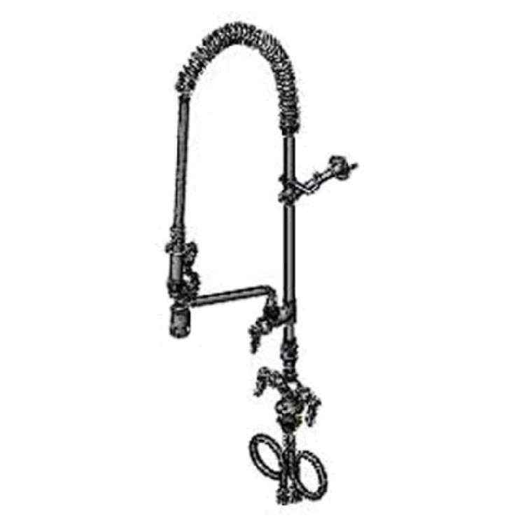 The T&S Brass B-0113-12-CR-BC EasyInstall Pre-Rinse Unit is a highly efficient fixture tailored for demanding commercial kitchen environments. With a single hole deck mount design, this unit incorporates a 44" flexible stainless steel hose that offers durability and ease of maneuverability, essential for rigorous pre-rinse tasks. The unit features a 0.65 gpm spray valve (model B-0107-C), which ensures water efficiency while providing powerful cleaning action. Adding to its versatility is a 12" swing spout, allowing greater reach and flexibility for various sink configurations. The 24" riser supports the unit's robust structure, while cerama cartridges enhance its resistance to wear and prolonged usage. Lever handles with color-coded indexes ensure intuitive operation, facilitating quick and precise temperature adjustments. Additionally, the 6" wall bracket provides stable support, securing the unit during extensive use. The included 18" flexible stainless steel supply hoses with 1/2" NPSM connections simplify installation and maintenance. In compliance with 2019 DOE PRSV - Class II standards, this pre-rinse unit promises a blend of efficiency and reliability, making it an invaluable asset for restaurants, catering facilities, and other high-volume food service operations seeking dependable and high-performing kitchen fixtures.