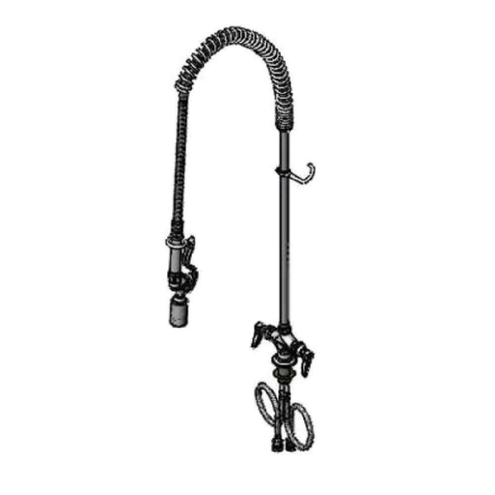 The T&S Brass B-0113-CR-J EasyInstall Pre-Rinse Unit Deck Mount Single Hole is engineered for efficiency and reliability, making it an indispensable tool for various sectors, including commercial kitchens and food service industries. This unit features a 1.07 GPM swivel spray valve (B-0107-J), providing a powerful and efficient water flow for pre-rinsing tasks. Its 44-inch flexible stainless steel hose and 24-inch riser ensure ease of use and accessibility, accommodating different washing angles and reducing user strain. The inclusion of 18-inch flexible supply lines further enhances its adaptability to various installation environments. The pre-rinse unit employs quarter-turn Cerama cartridges, renowned for their durability and smooth operation, ensuring long-lasting performance and easy maintenance. This unit is designed with low lead compliance, meeting stringent safety and environmental standards. It also adheres to the 2019 DOE PRSV - Class II standards, underscoring its energy efficiency and operational excellence. The deck mount single-hole installation offers a clean and straightforward setup, ideal for maximizing space while maintaining functionality. This pre-rinse unit stands out for its combination of innovative design and practical features, delivering exceptional performance for high-demand applications.