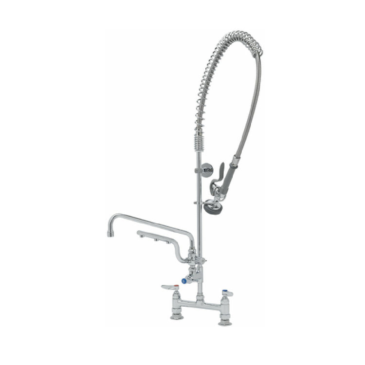 T&S Brass B-0123-U12-B UltraRinse 8” Deck Mount Mixing Faucet With Polished Chrome Plated Brass Body