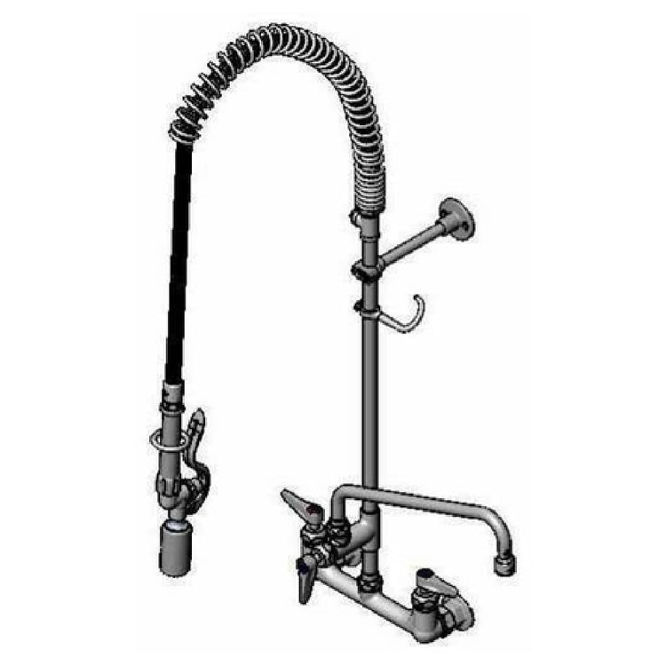 T&S Brass B-0133-12WCRBCT EasyInstall Pre-Rinse Unit 8" Wall Mount 44" Flexible Stainless Steel Hose With B-0107-C Low Flow Spray Valve