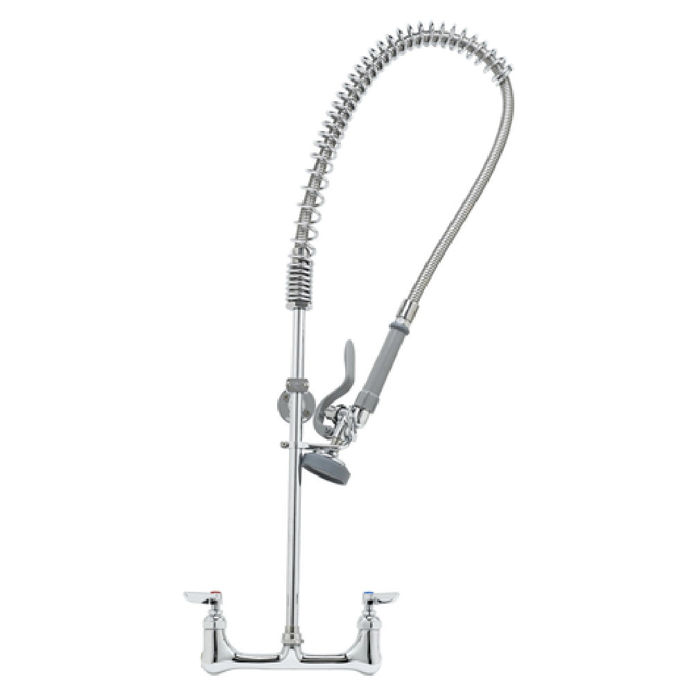 The T&S Brass B-0133-CCB EasyInstall Pre-Rinse Unit Spring Action Wall Mount is a precision-engineered component designed for efficient pre-rinse tasks in commercial kitchens. Featuring an 8-inch center-to-center configuration, this unit is tailored for wall-mounted installations, ideal for optimizing space and functionality in busy environments. The product is equipped with 1/2-inch NPT male inlets, facilitating seamless integration with existing plumbing systems. A robust wall bracket ensures stability and durability, even in high-usage scenarios. The inclusion of quarter-turn Eterna cartridges enhances operational efficiency, allowing for swift and reliable water flow control. Notably, the unit adheres to low lead standards, ensuring compliance with safety regulations and contributing to a healthier kitchen environment. The spring action mechanism provides ease of use, making it a practical choice for different segment markets within the food service industry, from small cafes to large-scale restaurant operations. The T&S Brass B-0133-CCB is a testament to quality engineering, offering a blend of convenience and compliance that meets the rigorous demands of modern commercial kitchens.