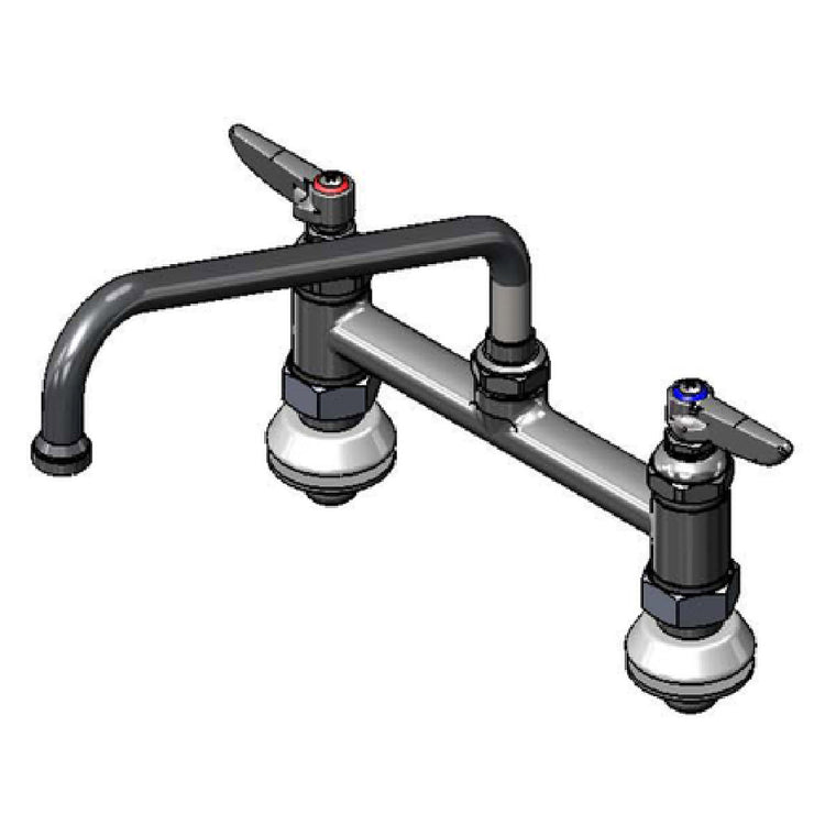 The T&S Brass B-0220-EE-061X Faucet with Eternas 8" Deck Mount is a highly specialized plumbing fixture designed for both commercial and residential applications. This faucet features a 10" swing nozzle (061X), providing an extended reach for various sink configurations. It comes equipped with 00EE inlets, ensuring a secure and efficient water connection. The faucet is constructed with quarter-turn Eterna cartridges featuring spring checks, which are designed to provide long-lasting durability and reliable performance. Lever handles make it easy to operate, accommodating users with varying needs. Notably, this faucet is low lead, aligning with health and safety standards for potable water. Compliant with ADA regulations, it is suitable for installations requiring accessibility features. The combination of these technical specifications makes the T&S Brass B-0220-EE-061X Faucet a versatile choice for different market segments, including hospitality, healthcare, educational facilities, and more, providing practicality and efficiency in demanding environments.