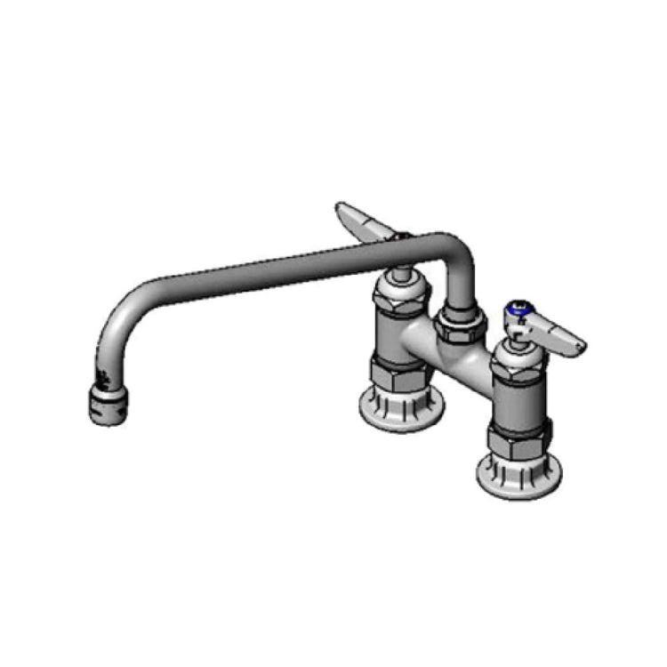 The T&S Brass B-0225-CR-K-F10 Pantry Faucet is a precisely engineered, double 4" deck mount unit that caters to diverse market segments within the plumbing and foodservice industries. This faucet features a 12" swivel nozzle, which enhances maneuverability and usability, making it ideal for environments requiring flexibility and efficiency. The inclusion of quarter-turn Cerama cartridges ensures durability and reliable control of water flow, contributing to reduced maintenance efforts. Lever handles provide ease of operation, further enhancing the user experience. With a 1.0 GPM aerator, this pantry faucet ensures optimal water conservation without compromising performance. Designed to meet low lead standards, it is compliant with rigorous health and safety requirements, aligning with ADA guidelines to support accessibility. The faucet connects with a standard 1/2" NPT, facilitating straightforward installation in a variety of settings. Known as model B-0425-M, this T&S Brass faucet represents a fusion of functionality and compliance, making it a compelling choice for institutions and businesses prioritizing sustainability, quality, and regulatory adherence.