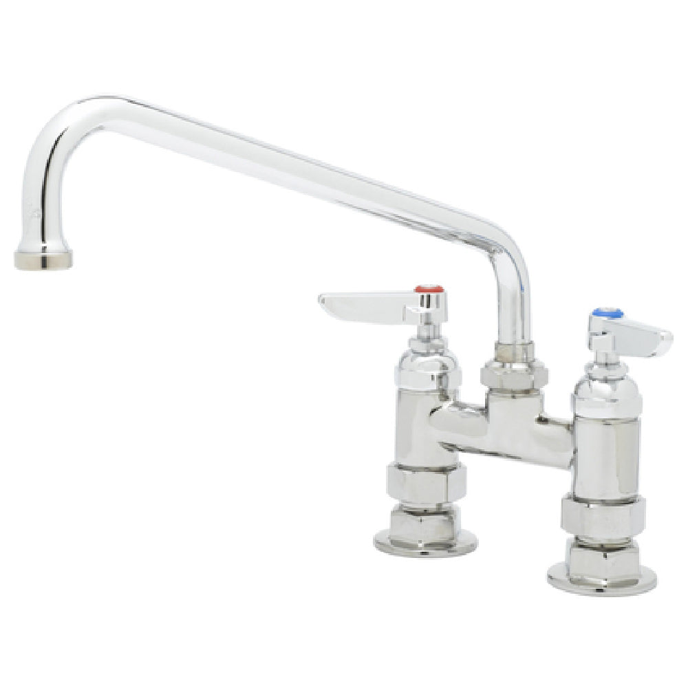 The T&S Brass B-0226 Mixing Faucet is a sophisticated deck-mounted fixture designed for both commercial and residential applications, where precision and reliability are paramount. Featuring a 10-inch swing nozzle, this faucet is engineered to provide flexible water delivery, making it ideal for various washing needs. It is constructed with 4-inch centers and equipped with 1/2-inch IPS eccentric flanged female inlets, ensuring a secure and compatible fit with standard plumbing setups. The faucet incorporates quarter-turn Eterna cartridges, renowned for their durability and ease of operation, which allow for smooth and effortless control of water flow. Lever handles facilitate user-friendly interaction, while the low-lead composition underscores its commitment to health and safety standards. Furthermore, the T&S Brass B-0226 Mixing Faucet adheres to ADA compliance, making it accessible for all users, including those with disabilities. Its robust design and compliance with industry standards make it a versatile and valuable addition to any kitchen or bathroom, catering to the needs of various market segments within the plumbing industry. This faucet not only emphasizes functionality but also ensures long-lasting performance, reliability, and a commitment to quality and accessibility.