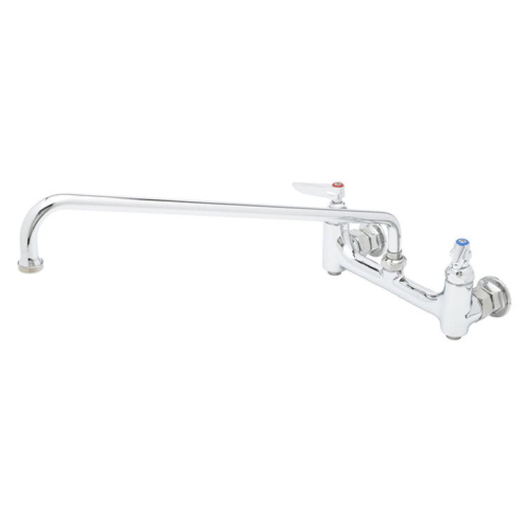 The T&S Brass B-0230-BST Sink Mixing Faucet is a versatile wall-mounted fixture with an 18-inch swing nozzle, designed to meet the precise demands of commercial kitchens and industrial environments. Engineered with 8-inch centers, this faucet accommodates a range of installation scenarios, ensuring adaptability and ease of integration into existing setups. The faucet is equipped with 1/2-inch IPS eccentric flanged female inlets, providing a secure and leak-resistant connection. Its lever handles offer intuitive operation, while the built-in stops enhance control over water flow, promoting efficiency and conservation. The integration of Eterna cartridges ensures long-lasting performance and reliability, reducing maintenance needs over time. As a low lead compliant product, it meets stringent safety standards, making it suitable for use in environments where potable water safety is a priority. Furthermore, the faucet's ADA compliance underscores its commitment to accessibility, accommodating users with disabilities. This robust combination of features makes the T&S Brass B-0230-BST an indispensable choice for industries that require durable and efficient water delivery solutions.
