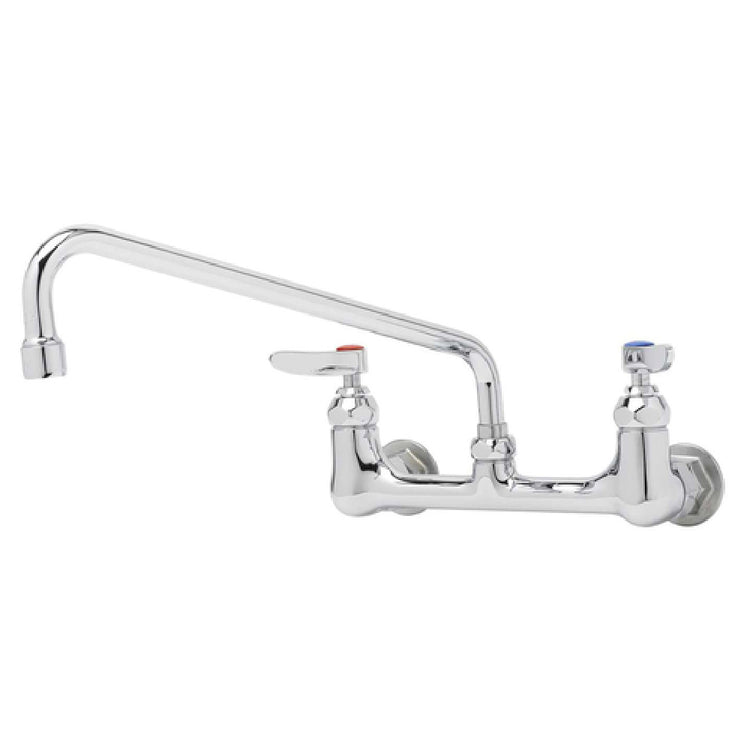 The T&S Brass B-0231-AM Sink Mixing Faucet is a highly functional and reliable choice for various commercial and industrial settings. Designed for wall mounting with 8-inch centers, this faucet features a 12-inch swing nozzle, offering flexibility and reach for diverse tasks. It is equipped with lever handles featuring an anti-microbial coating, enhancing hygiene and making it suitable for environments where cleanliness is paramount. The faucet incorporates quarter-turn Eterna cartridges, known for their longevity and smooth operation, ensuring a durable and user-friendly experience. With 1/2-inch NPT female inlets, it provides compatibility with standard plumbing setups. Additionally, the B-0231-AM model is designed with low lead content, aligning with health and safety standards. Being ADA compliant, it also ensures accessibility, making it an inclusive option for facilities catering to a wide range of users. This sink mixing faucet embodies both functionality and compliance, making it an excellent choice for institutional kitchens, healthcare facilities, and any environment where durability and performance are essential.