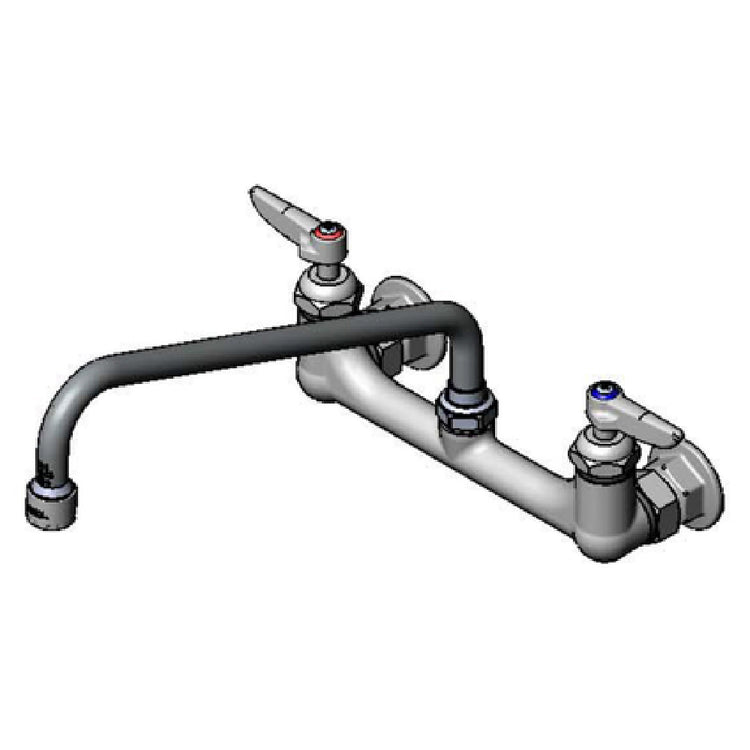 The T&S Brass B-0231-CR-SC-F1 Pantry Faucet Double Wall Mount is a precision-engineered solution ideal for a range of commercial kitchen applications. With its double wall mount design and 8-inch centers, this faucet is crafted for ease of installation and stability. It boasts a 12-inch swing nozzle, allowing for versatile water control and maximized reach across sinks. The inclusion of lever handles enhances user convenience, promoting smooth and effortless operation. This faucet is equipped with quarter-turn Cerama cartridges, renowned for their durability and efficiency, ensuring consistent performance over time. The integrated stream regulator tip and 1.0 GPM aerator are engineered to optimize water flow while conserving resources. With 1/2-inch NPT connections, this faucet ensures seamless compatibility with standard plumbing configurations. Safety and compliance are prioritized with the inclusion of check valves, vandal-resistant features, and ADA compliance, making it suitable for a wide array of environments. The low lead designation underscores its commitment to health and safety standards, catering to environmentally-conscious establishments. Designed to meet the rigorous demands of the foodservice industry, the T&S Brass B-0231-CR-SC-F1 stands out for its robust construction and reliable functionality, making it a valuable component in any high-traffic kitchen setting.