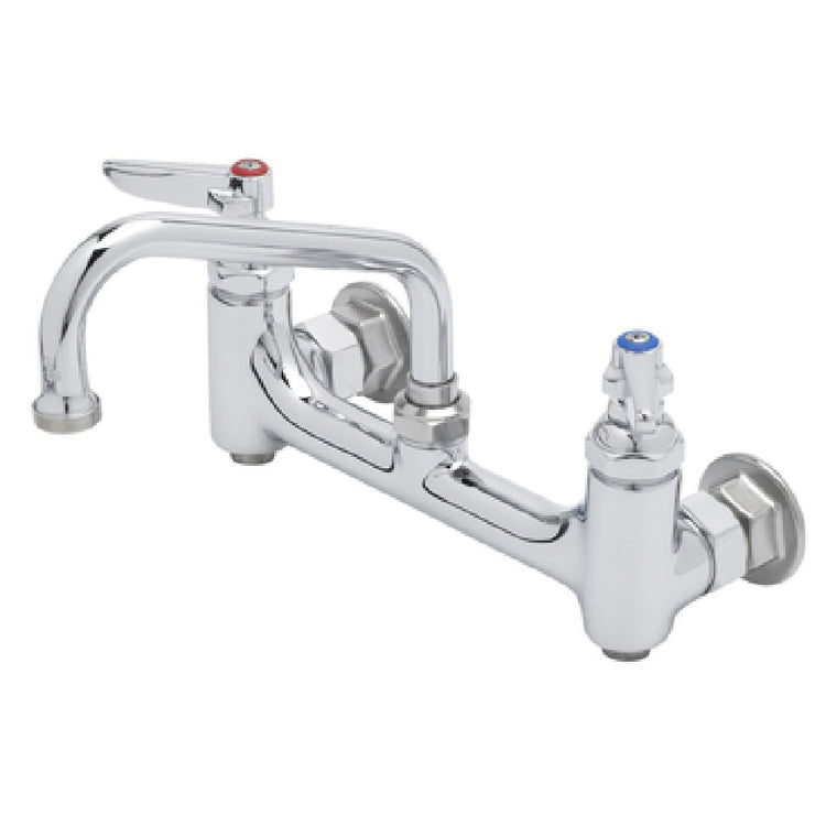 The T&S Brass B-0232-BST Sink Mixing Faucet is an expertly designed plumbing fixture, ideal for those seeking both functionality and compliance in a kitchen or bathroom setting. This faucet features a 6-inch swing nozzle, enabling versatile water delivery and ease of use. It is wall-mounted, accommodating an 8-inch center setup, which is suitable for various architectural layouts. The faucet connects via 1/2-inch IPS eccentric flanged female inlets, ensuring a secure fit and ease of installation. It boasts durable lever handles for straightforward operation, enhancing user experience. Built-in stops add an extra layer of convenience, allowing for easy maintenance and adjustment. The Eterna cartridges ensure long-lasting performance, a vital feature for high-use environments. This faucet is low lead, aligning with stringent safety standards, and is ADA compliant, making it accessible for all users. Whether in a commercial kitchen, healthcare facility, or residential setting, the T&S Brass B-0232-BST Faucet delivers reliable performance with industry-leading specifications, serving diverse market segments with its robust and user-friendly design.