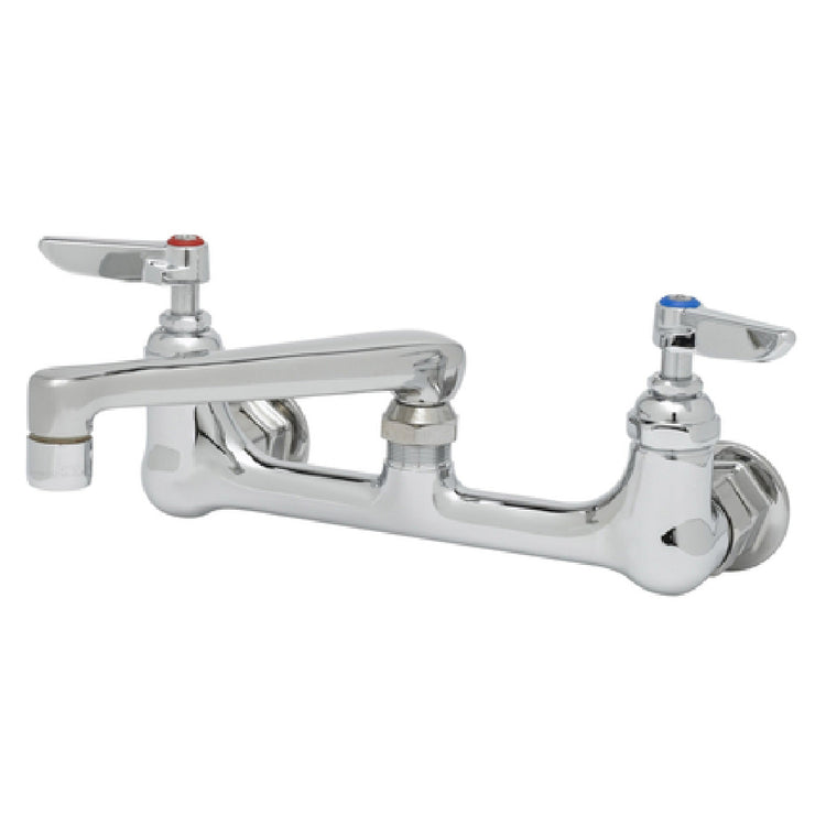 The T&S Brass B-0234-BST Sink Mixing Faucet is a high-performance fixture featuring a 6-inch cast nozzle with an integrated aerator, designed to optimize water flow and efficiency. Engineered with 8-inch centers and 1/2-inch IPS eccentric flanged female inlets, this faucet ensures a reliable and adaptable connection in commercial and industrial environments. The inclusion of lever handles provides user-friendly operation, while the built-in stops offer added control over water flow, enhancing safety and functionality. Equipped with Eterna cartridges, the faucet guarantees a durable and long-lasting performance, resistant to wear and tear. Additionally, this faucet is constructed with low lead content, making it a safer choice compliant with health standards. It adheres to ADA compliance, ensuring accessibility for all users. The T&S Brass B-0234-BST is an ideal solution for various markets, from restaurants to healthcare facilities, providing robust functionality and compliance with industry standards.