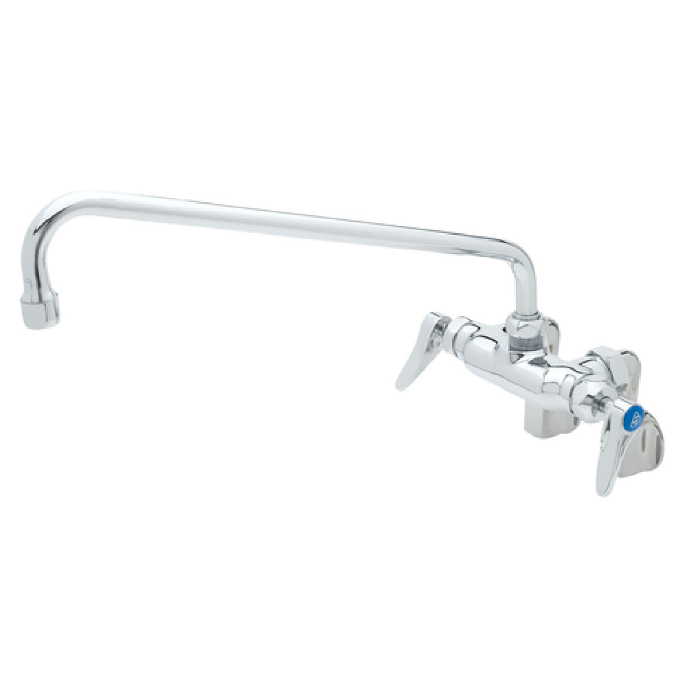 The T&S Brass B-0236-CR-063X Double Pantry Faucet is a wall-mounted fixture designed to accommodate diverse kitchen environments with its adjustable centers. This versatile faucet features a 14-inch swing nozzle equipped with a stream regulator outlet, offering precise water control for various culinary tasks. Engineered with lever handles, it ensures ease of operation, suitable for both residential and commercial use. The integration of quarter-turn Cerama cartridges with spring checks provides reliable performance, minimizing the risk of leakage. Designed with 1/2-inch NPT female inlets, this faucet facilitates straightforward installation and connectivity with plumbing systems. Its low lead composition aligns with safety and health standards, making it a trustworthy choice for conscious consumers. The product's compliance with cCSAus and ADA standards underscores its commitment to both quality and accessibility. This double pantry faucet is crafted to meet the demands of professional kitchens while remaining accessible to a wider market looking for durability and efficiency in their water fixtures. Its thoughtful design and comprehensive features make it an ideal choice for those in the food service industry or any setting requiring a robust and adaptable faucet solution.