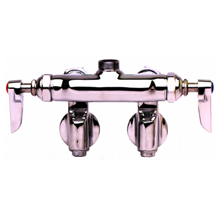 The T&S Brass B-0240-LN Sink Mixing Faucet is a versatile wall-mounted fixture designed for commercial and industrial applications. Featuring adjustable inlet arms with integral stops, it accommodates centers ranging from 2-1/4 inches to 8-1/4 inches, allowing for flexible installation configurations. This faucet is engineered with 1/2-inch IPS female connections and comes with a flange for secure mounting. The inclusion of Eterna cartridges ensures long-lasting performance, providing a reliable solution for high-use environments. Compliant with low lead regulations, this faucet aligns with health and safety standards, making it a responsible choice for facilities prioritizing water quality. Additionally, its ADA compliance underscores its accessibility, catering to a wide range of users. The T&S Brass B-0240-LN Sink Mixing Faucet is an ideal choice for kitchens, laboratories, and other professional settings that require durable and adaptable plumbing solutions. Its robust construction and thoughtful design make it a standout option within its category, offering both functionality and compliance with essential industry standards.
