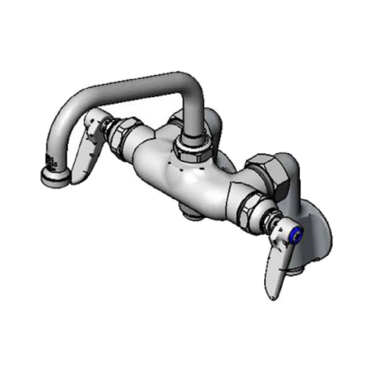 The T&S Brass B-0242 Pantry Faucet is designed with precision to meet the exacting standards of modern kitchen environments. This wall mount fixture features a double 6-inch swing nozzle, allowing for versatile water flow management, which is essential in both commercial and residential settings. Its adjustable centers provide flexibility during installation, accommodating various kitchen layouts. The faucet integrates Eterna cartridges, known for their durability and long life, ensuring sustained performance over time. It also includes integral stops, enabling easy maintenance and repair, minimizing downtime in busy operations. Crafted in compliance with low lead requirements, this faucet upholds health and safety standards, making it a reliable choice for establishments concerned with public welfare. Additionally, it is ADA Compliant, ensuring accessibility and convenience for all users. The T&S Brass B-0242 Pantry Faucet merges functionality with compliance and durability, making it a go-to choice for industry professionals seeking efficiency and reliability in high-demand kitchen environments.