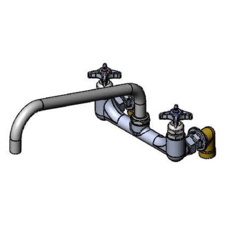 The T&S Brass B-0290-BT Kettle & Pot Sink Faucet Wall Mount 8" Adjustable Centers is a meticulously designed piece crafted for industrial-grade performance. This faucet excels in versatility with its 8-inch adjustable centers, catering to varied installation requirements. The inclusion of a 12-inch Big-Flo swing nozzle and an additional 12-inch swing nozzle promises enhanced reach and flexibility within professional kitchen environments, making it suitable for tasks involving large kettles and pots. Its design is further refined with 4-arm handles, ensuring ease of use and precision control over water flow. Equipped with a 3/4" BSPT female inlet, this faucet integrates seamlessly into existing plumbing systems. The T&S Brass B-0290-BT is engineered for reliability and efficiency, making it an invaluable component across multiple sectors, including restaurant kitchens, food processing facilities, and other commercial settings where robust and adaptable sink solutions are required. Its durable construction and functional design highlight its capability to withstand the rigors of high-demand operations, standing as a testament to T&S Brass's commitment to quality and performance in water fixture solutions.