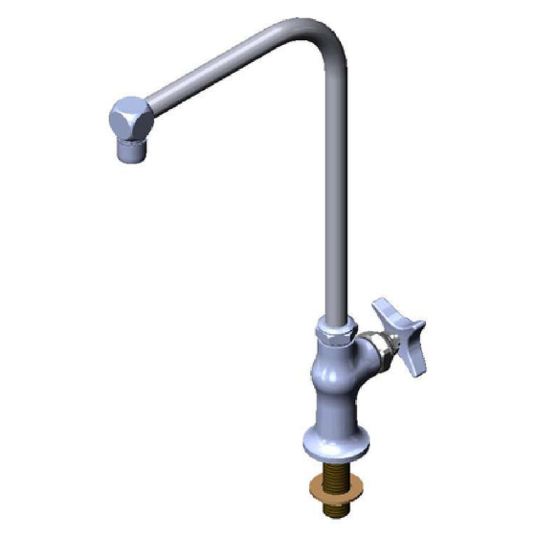 The T&S Brass B-0318-02 Faucet B-0318 Modified 4-arm Handle & Red Index is a precision-engineered plumbing fixture that stands out with its unique combination of features tailored for diverse industry needs. This faucet is designed with an extended height, making it suitable for applications requiring extra reach. It integrates quarter-turn Eterna cartridges, renowned for their durability and efficiency, ensuring long-lasting, trouble-free operation. The faucet's low lead construction signifies its compliance with safety standards, offering peace of mind in environments where water quality is paramount. A distinctive red index is included on the 4-arm handle, allowing for intuitive control and operation, while adhering to ADA compliance standards, which is essential for facilities aiming to provide accessibility. These features make it an ideal choice for commercial kitchens, healthcare facilities, and any professional setting where reliable and safe water delivery is crucial. The T&S Brass B-0318-02 Faucet's combination of technical specifications and compliance highlights its commitment to quality and user-centric design, ensuring that it meets the rigorous demands of various segments in the plumbing industry.
