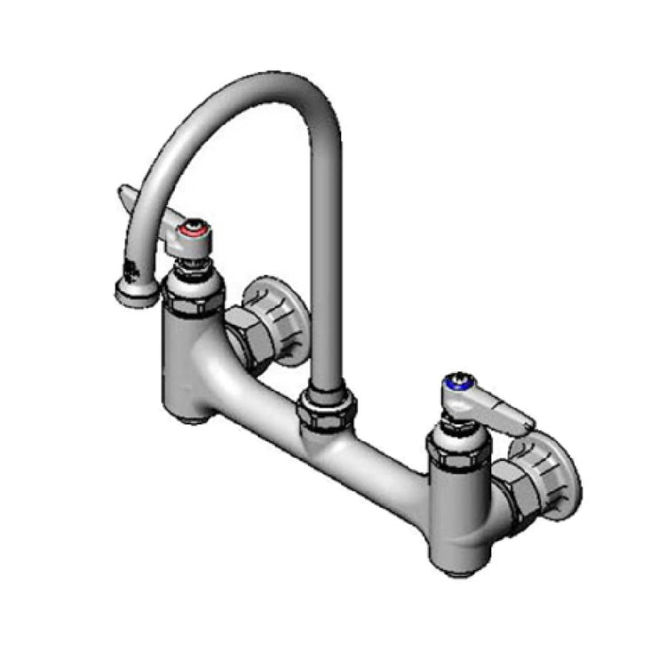 The T&S Brass B-0331-BST Faucet Wall Mount 8" Adjustable Centers is an expertly engineered fixture designed for ultimate functionality and adaptability in various professional settings. Featuring 8-inch adjustable centers, this faucet accommodates diverse installation demands. Its 5-3/4" swivel gooseneck, equipped with a lock washer, ensures a secure and steady flow, suiting both flexible and rigid applications. The quarter-turn ceramic cartridges with check valves facilitate smooth and reliable operation, minimizing wear and ensuring longevity. Lever handles with color-coded indexes enhance ease of use and help in quick identification, improving operational efficiency in fast-paced environments. Crafted from polished chrome-plated brass, the faucet body exudes durability and aesthetic appeal, fitting seamlessly into any modern workspace. With 1/2" NPT female inlets, this faucet is designed for straightforward integration into existing plumbing systems. The T&S Brass B-0331-BST Faucet is cCSAus certified and ADA Compliant, underscoring its commitment to safety, accessibility, and performance standards. This faucet provides a comprehensive solution for industries requiring reliable water delivery systems, such as commercial kitchens, healthcare facilities, and laboratories, where precision, efficiency, and compliance are paramount.