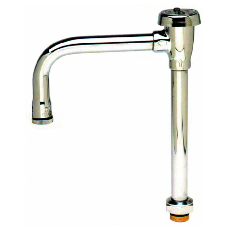 The T&S Brass B-0407-02 Swivel Vacuum Breaker Gooseneck is a specialized component designed for precise functionality in a range of professional settings. Measuring 5-3/4" in length, 9-1/4" in height, and 4-3/4" in depth, this gooseneck is engineered for optimal performance. Its polished chrome-plated finish not only enhances its aesthetic appeal but also ensures durability and resistance to corrosion, making it suitable for environments that demand high sanitation standards. The unique swivel feature at its base allows for flexible movement, providing convenience and ease of use in various applications, from commercial kitchens to laboratory settings. The integration of a vacuum breaker is a crucial feature, preventing backflow contamination, thereby securing compliance with health and safety regulations. This component's ability to replace a standard nozzle potentially reduces overall costs while maintaining functional integrity. The T&S Brass B-0407-02 Gooseneck is a practical choice for professionals seeking a reliable solution that combines technical excellence with user-centric design, catering to diverse market segments that require robust and adaptable plumbing fixtures.