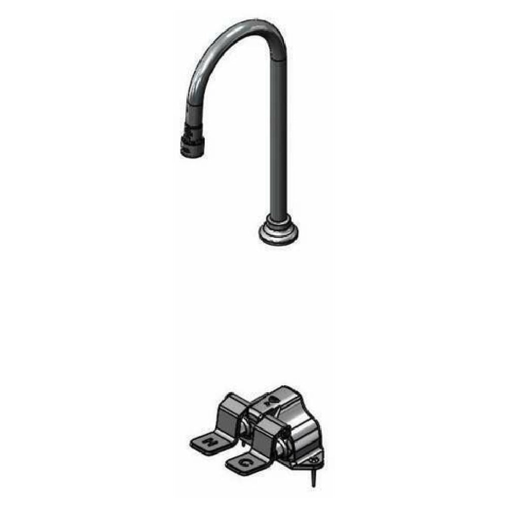 The T&S Brass B-0502-03-VL15 Pedal Valve Double Floor Mount is meticulously engineered for precision and reliability in high-demand environments. Featuring a robust 5-9/16" rigid gooseneck, this pedal valve is equipped with a 1.5 GPM VR laminar flow device that ensures a steady, controlled stream of water, ideal for applications requiring consistent flow. The double floor mount design offers stability and ease of use, making it suitable for diverse sectors such as healthcare, food service, and industrial settings. Built with low lead compliance, it adheres to stringent safety standards, ensuring safe water delivery. The integration of check valves provides an added layer of protection against backflow, maintaining water purity. With 1/2" NPT inlets and outlet, installation is straightforward and compatible with a wide range of plumbing systems. Certified by NSF and cCSAus, this pedal valve stands as a testament to quality and safety, meeting industry regulations. The T&S Brass B-0502-03-VL15 is designed to deliver exceptional performance and durability, making it a valuable asset in any professional environment where hygiene and efficiency are paramount.