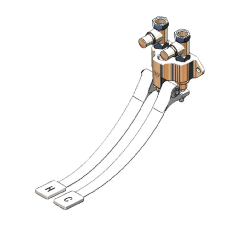 The T&S Brass B-0504-LKS Pedal Valve is a precision-engineered double, wall-mounted unit, designed with functionality and efficiency in mind for various industrial applications. This robust valve is characterized by its inlets positioned on 2-1/2" centers, ensuring a compact yet highly effective layout for diverse installation environments. With a design that accommodates 1" from wall to the center of the inlets, this pedal valve is engineered to maximize space efficiency, ideal for settings where space considerations are paramount. The wall to pedal tips measure approximately 13-3/4", providing an ergonomic interface for users, facilitating ease of access and operation. Equipped with straight loose key stops, the B-0504-LKS ensures secure and reliable control, offering precision in managing water flow. This valve is particularly suitable for environments requiring hands-free operation, such as medical, food service, or laboratory settings, where hygiene and convenience are critical. Its sturdy construction and thoughtful design make the T&S Brass B-0504-LKS Pedal Valve a valuable asset in any industrial or commercial setting, delivering reliable performance and operational efficiency.