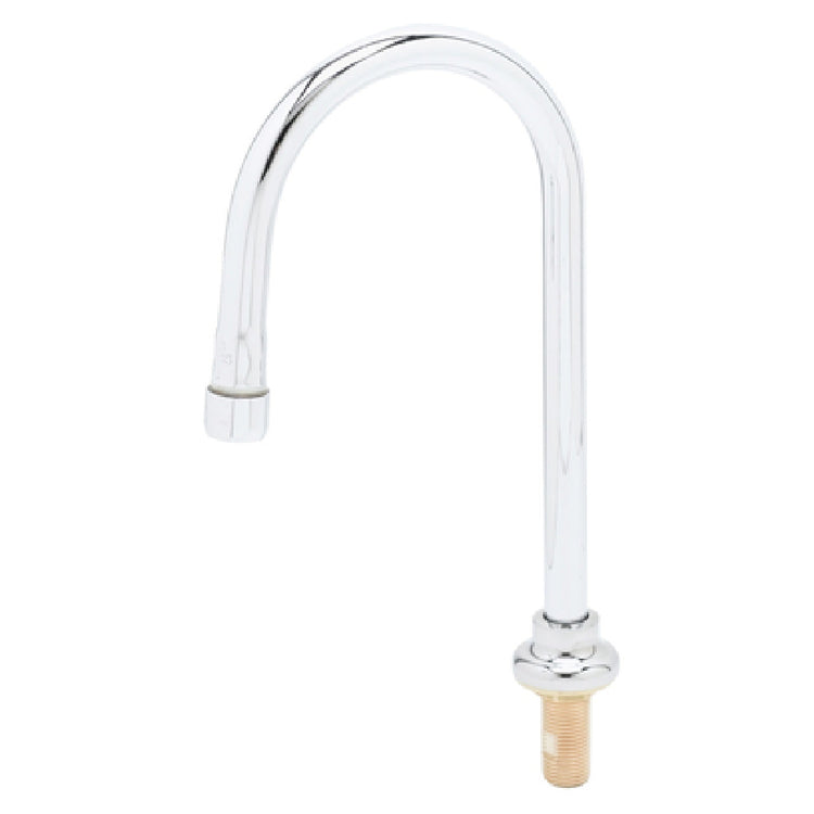 The T&S Brass B-0521 Rigid Gooseneck Spout is a precision-engineered fixture that combines functionality and design for various applications across different industry segments. This gooseneck spout features a 5-1/2" spread and stands at 10-1/4" in height, delivering an ideal combination of reach and elevation suited for commercial kitchen environments, laboratory settings, and healthcare facilities. With a 4-3/4" clearance, the spout provides ample space beneath for a variety of tasks, enhancing the efficiency and usability of workspace operations. Equipped with an aerator, the B-0521 spout ensures a controlled and splash-free water flow, making it a practical solution for environments requiring precision and cleanliness. This product encapsulates the reliability and innovative design synonymous with T&S Brass, a trusted name in plumbing fixtures. Its robust construction and thoughtful dimensions make it a preferred choice for professionals seeking durable and efficient plumbing solutions. The T&S Brass B-0521 Rigid Gooseneck Spout is a versatile component tailored to meet the stringent demands of professional settings, ensuring a reliable performance that professionals across industries can depend on.