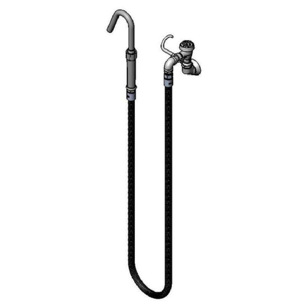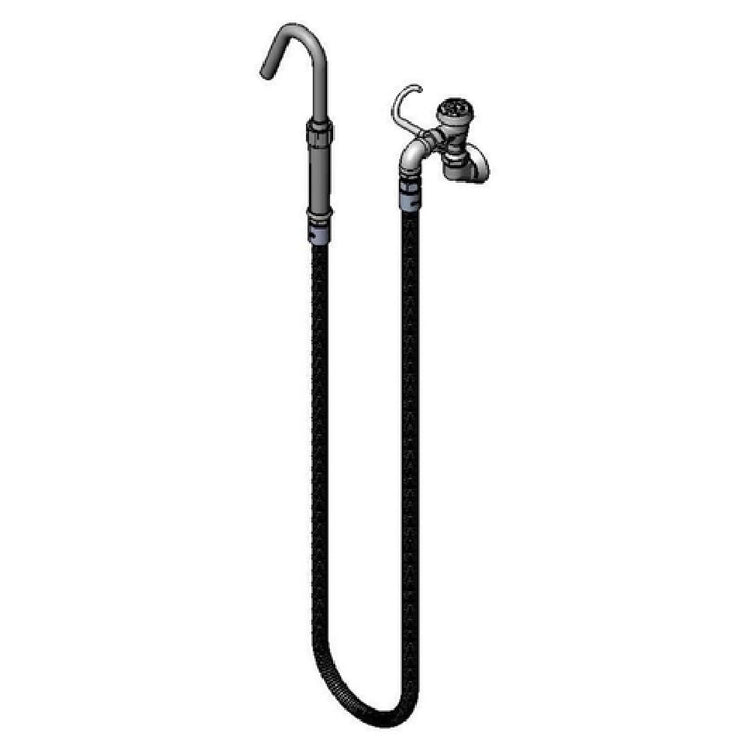 The T&S Brass B-0601 Pot Filler Faucet Wall Mount Vacuum Breaker is a specialized kitchen fixture designed to meet the rigorous demands of both commercial and residential kitchens. Featuring a wall mount design, this pot filler faucet is equipped with a vacuum breaker, ensuring the prevention of backflow and maintaining water safety standards. The flexible stainless steel hose measures 68 inches, providing ample reach across large cooking areas, while the hooked nozzle and swivel joint offer unparalleled maneuverability and ease of use. With a 1/2" NPT female inlet, this faucet is compatible with standard plumbing connections, facilitating straightforward installation. Constructed to comply with low lead standards, the T&S Brass B-0601 meets NSF certification requirements, underscoring its commitment to public health and safety. This pot filler faucet is an ideal choice for professional kitchens and high-demand culinary environments, where efficiency and reliability are paramount. Its robust build and thoughtful design make it a versatile and valuable asset, catering to various market segments such as restaurants, hotels, and institutional kitchens, ensuring that large pots and cooking vessels can be filled with precision and ease, enhancing operational efficiency and convenience.