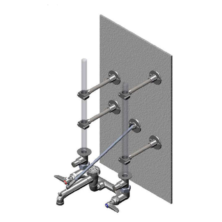 The T&S Brass B-0662 Ceiling Supply Service Sink Faucet is engineered for efficiency and reliability, tailored to meet the needs of various industrial applications. Featuring 8-inch centers, this faucet is constructed for ceiling supply configurations, providing a convenient solution for overhead water delivery. The faucet incorporates OOJJ stops, ensuring precise flow control and ease of maintenance. Enhanced stability is achieved through a robust wall brace assembly, making it suitable for environments where durability is paramount. Lever handles offer intuitive operation, catering to a wide range of users by simplifying water flow adjustments. An integrated vacuum breaker is a key feature, safeguarding the water supply by preventing backflow contamination, crucial in maintaining hygiene standards in service areas. The T&S Brass B-0662 is an ideal choice for commercial kitchens, janitorial spaces, and service sinks, where reliable water management and stringent safety standards are essential. Its comprehensive design meets diverse industry requirements, providing a practical and secure water dispensing solution for professional settings.